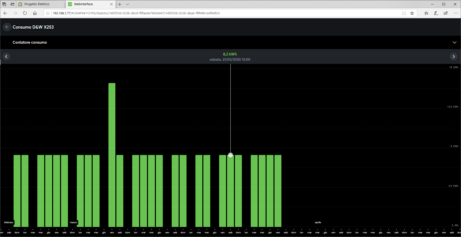 The problem is that I always see the same daily consumption, 8.2 kWh (!), and on some days I see it empty(!). And one day I had 16.4 kWh, as you can see on the attached screenshots.