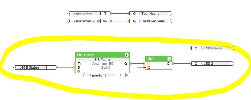 jeweilige Status LED nur in der Nacht per EIB Taster Rückmelden ??