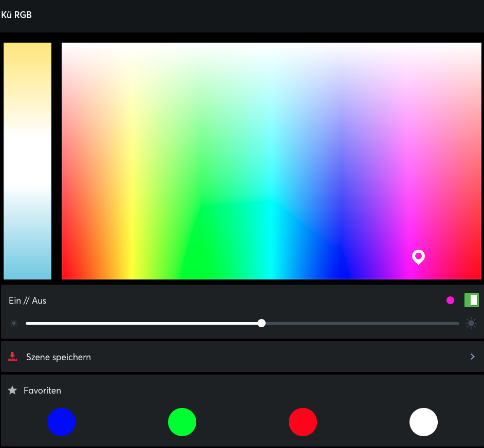 Der RGBW LED Controller AKD-0424V.01 von MDT erwartet im RGB Betrieb einen 3 Byte Farbwert (232.600 RGB Wert 3x(0..255) zur absoluten Farbeinstellung.