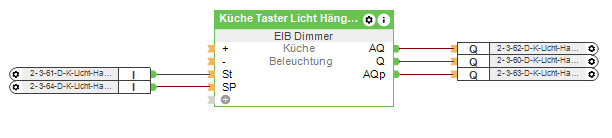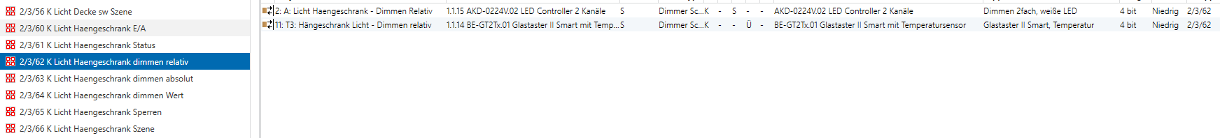 Jetzt nur das Ganze angesteuert durch den Glastaster... Und hier hab ich halt das Problem, dass wenn der Glastatster in der Dimmfunktion parametriert ist, er keinen absoluten Dimmwert ausgibt sonder einen 4-bit Dimmschritt.