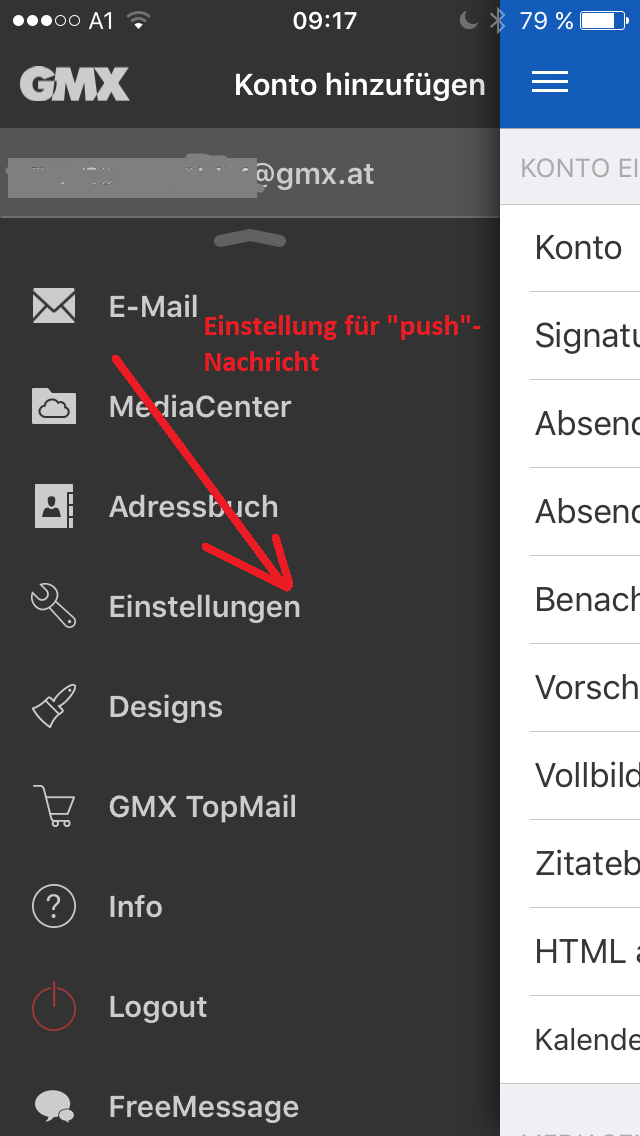 Für die Pushnachricht habe ich einfach über einen Provider (in meinem Fall gmx.at) eine eigene Emailadresse angelegt und mir die gmx-App für das iphone installiert.