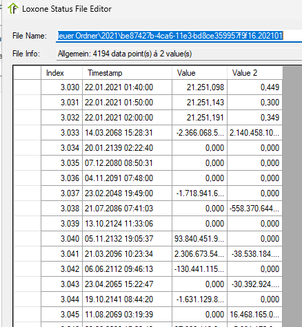 Danke für die Warnung - meines Wissens nach sind das die Dateien in denen der Miniserver die Remanenzwerte abspeichert. Es geht mir hierbei wie oben beschrieben nicht darum die Werte auszulesen sondern falsche Werte zu korrigieren/fehlende Werte nachzutragen. Ich will auch nicht die Struktur der Dateien ändern sondern nur die Werte, was (wenn die Werte nicht falsch sind) unproblematisch sein sollte.