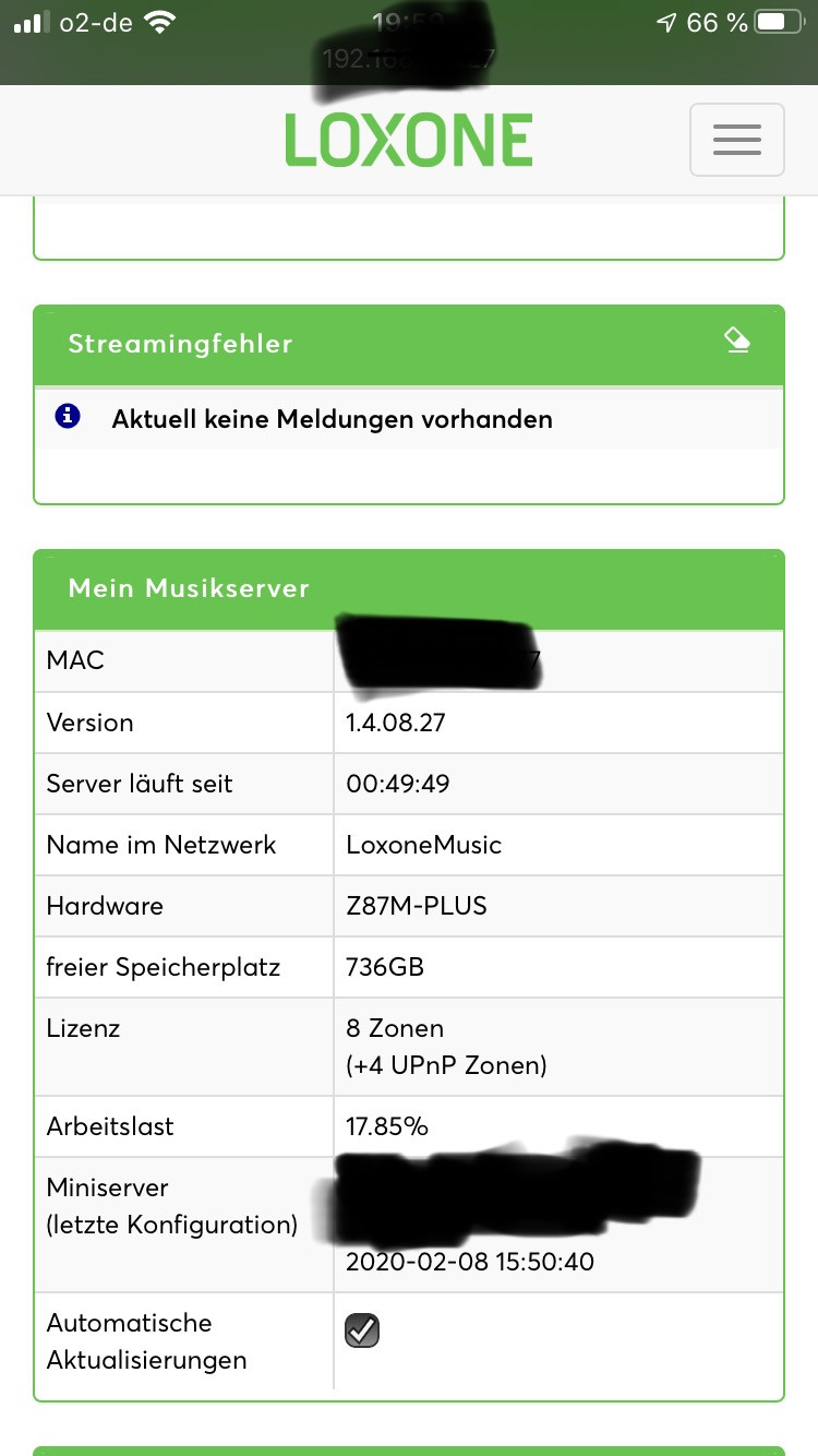 Sprich der Musikserver startet richtigerweise innerhalb 30sek aber bis sich der Musikserver dann mit dem Miniserver verbunden hat dauert es dann insgesamt 2 Minuten.