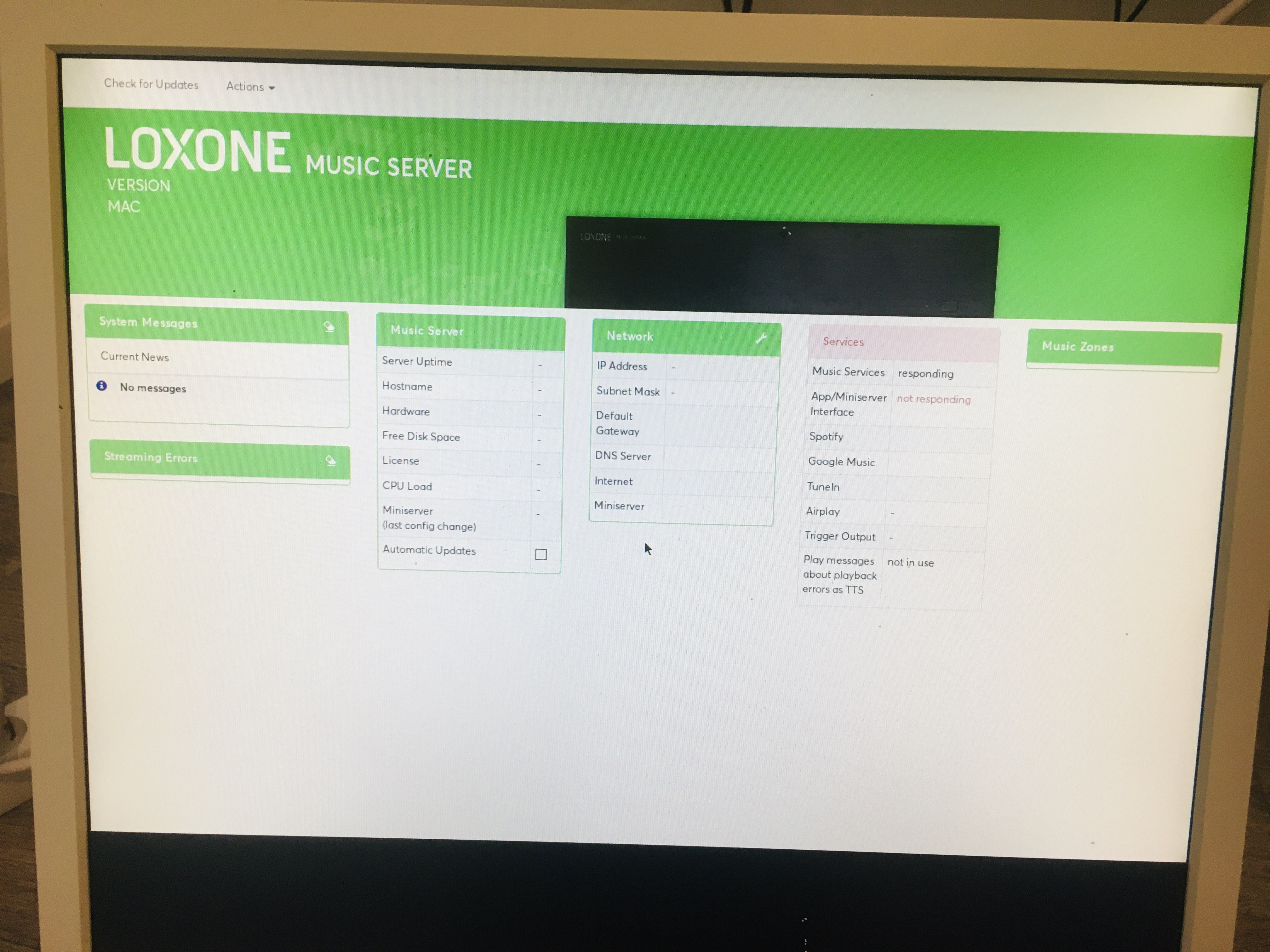 Beim hochfahren scheint alles normal zu sein und es kommt auch nur das LOXONE MUSIKSERVER LOGO und dann sofort die Benutzeroberfläche - siehe Screenshots.