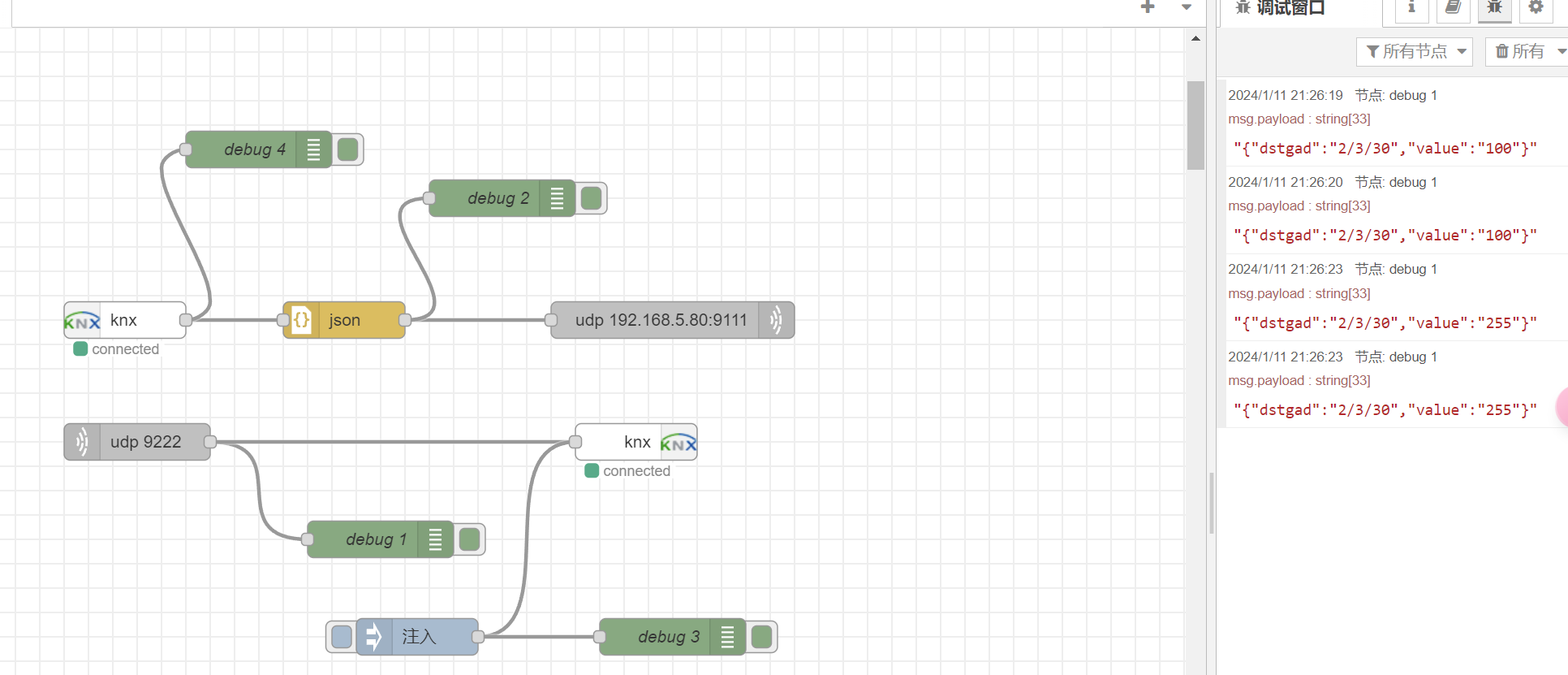 Ich habe einen Loxone MS Compact und verwende das KNX-System, um die Lichter zu Hause zu steuern. Da MS keine KNX-Schnittstelle hat, verwende ich die KNX2Lox per UDP-Methode, um die KNX-Lichter zu steuern. Ich möchte dazu die Loxone-Anwendung verwenden Steuern Sie die KNX-Dimmlichter. Der aktuelle standardmäßige virtuelle KNX-Ausgang ist Die Konfiguration verfügt nur über den EIN/AUS-Befehl und EIN/AUS kann normal verwendet werden. Ich möchte die KNX-Dimmsteuerung über einen 1-Byte-Dimmwert implementieren. Die Ausgabe ist auf dem UDP-Monitor zu sehen und NodeRed kann auch Befehle empfangen, aber die Helligkeit des Lichts kann nicht gesteuert werden. Wie kann ich das Problem lösen?