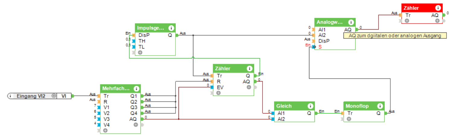 Am Analogwahlschalter wird die Anzahl der Impulse zu einem Digitalen Ausgang ausgegeben. ( oder analogen )