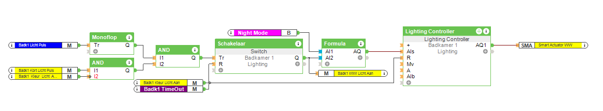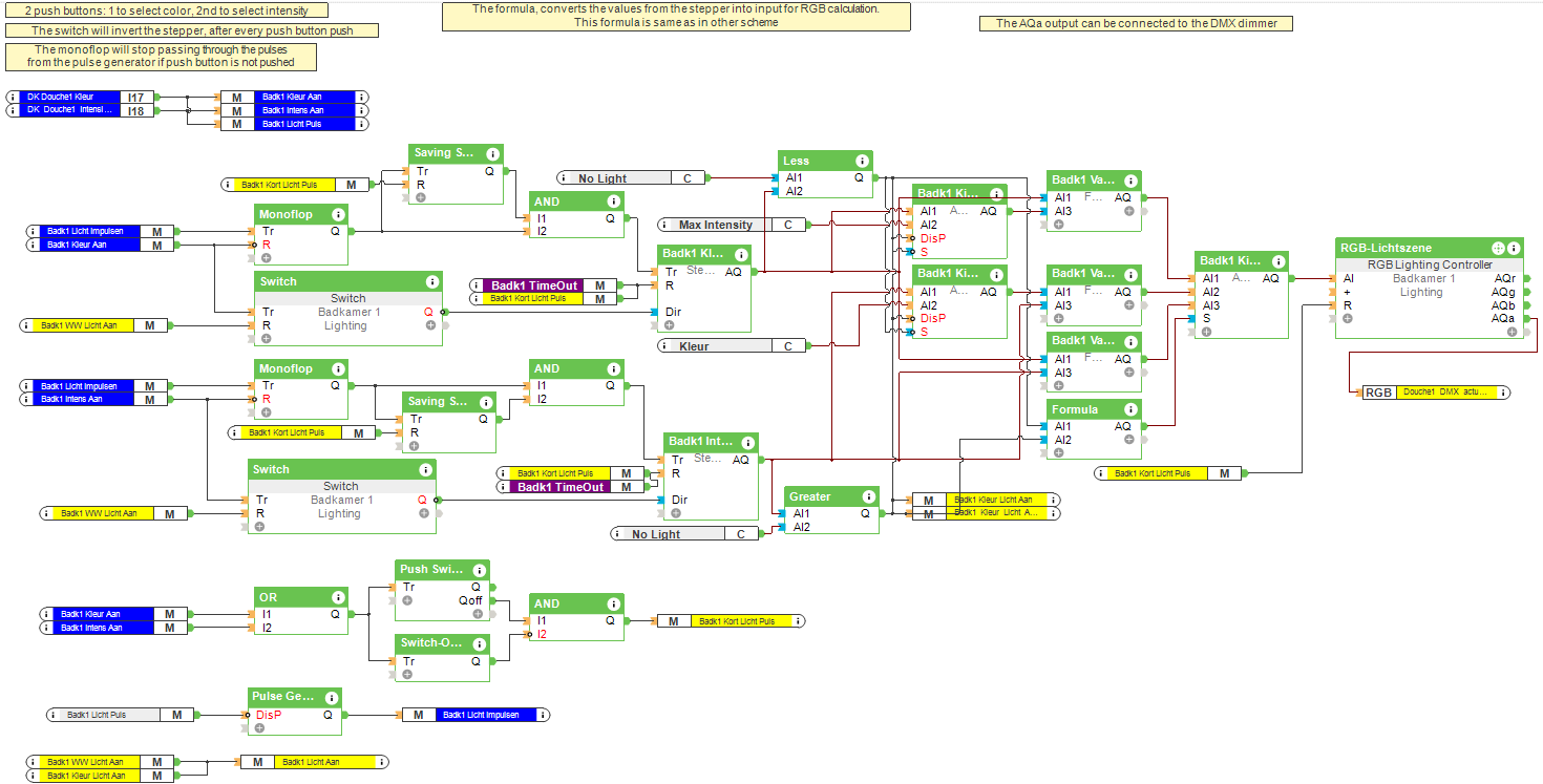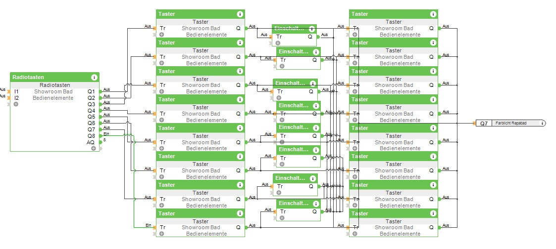 Hab noch keinen Baustein. ich Kann die LED über einen Taster innerhalb der Dusche einschalten.Da liegt jetzt das Kabel parallel drauf und dann auf ein Relais vom MS.