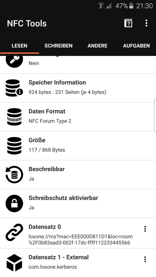 Da man über den Miniserver seine Loxone App nicht steuern kann, habe ich jetzt die NFC Funktion dafür missbraucht.