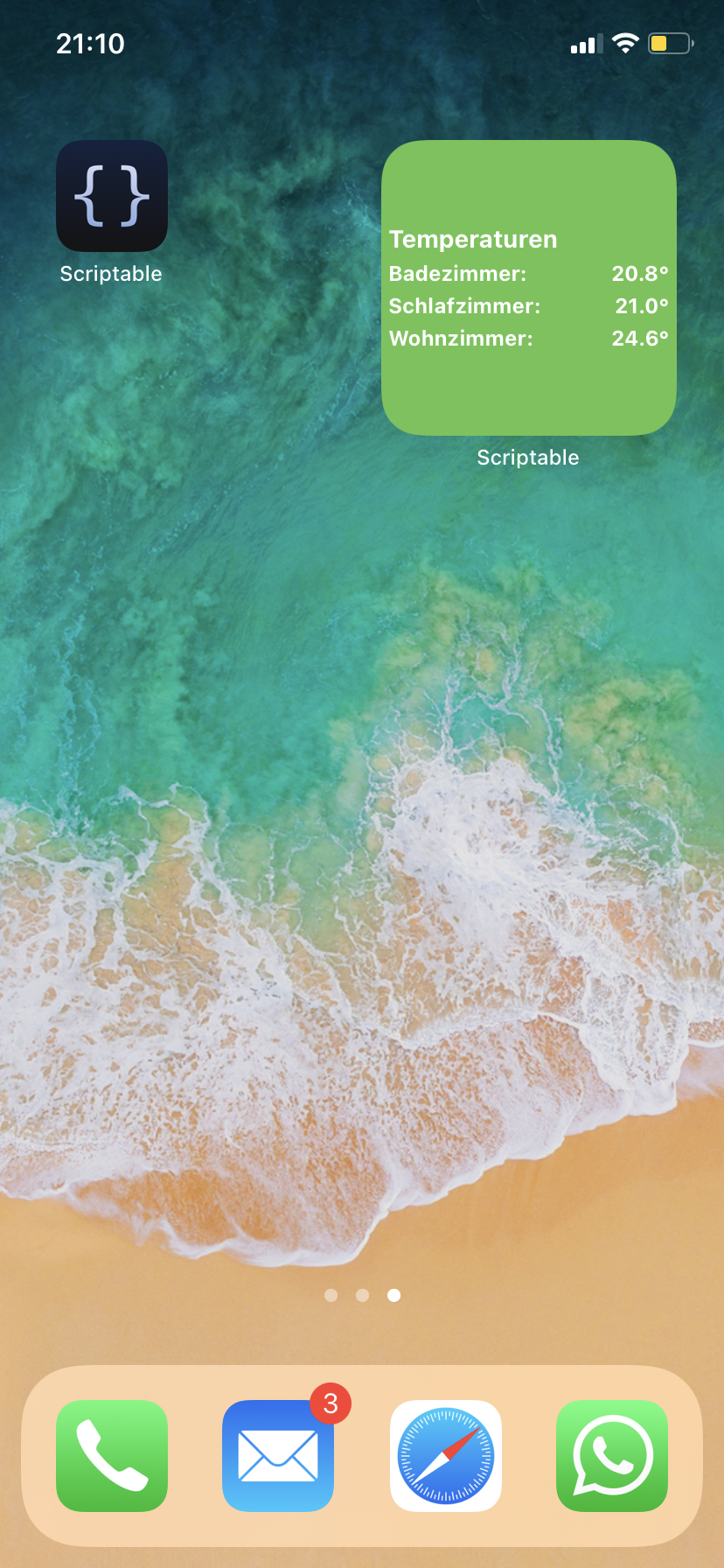Sehr gute Idee! Die App Scriptable habe ich schon länger installiert, jedoch keine Verwendung bisher dafür gehabt. Ich denke hier können richtig gute Ideen umgesetzt werden.