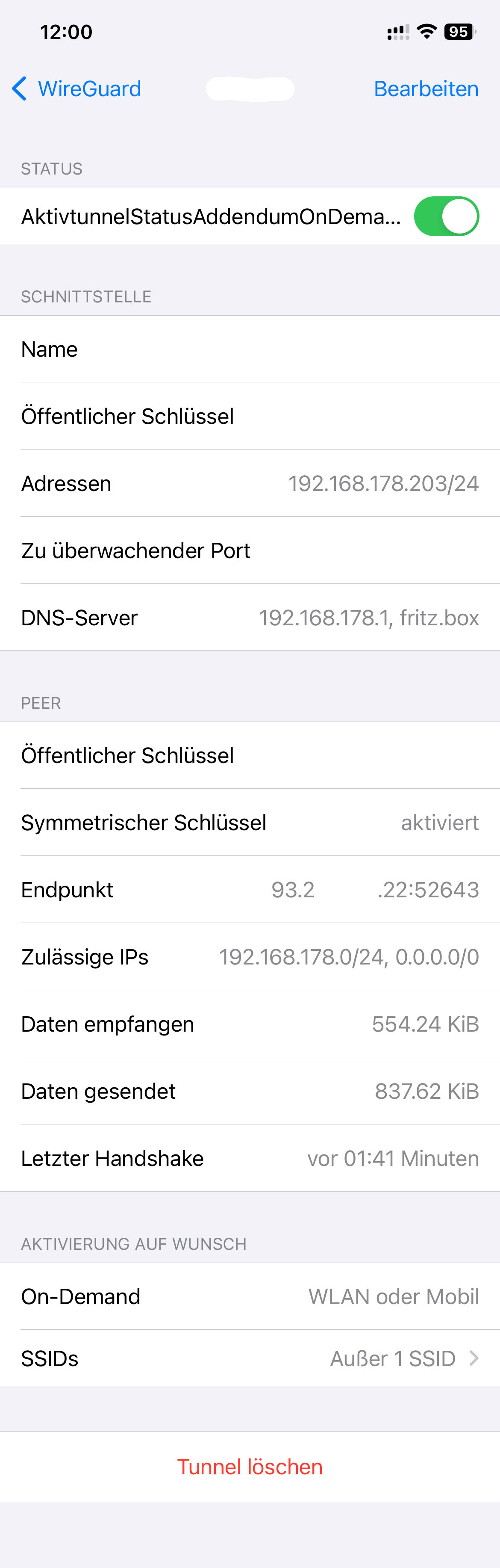 Ja, es funktioniert etwas anders als die IOS VPN-On-Demand Lösung. Ich habe aber die Wireguard Konfiguration so eingestellt, dass nur Traffic zu meinem Heimnetz durch den Tunnel geht. Somit habe ich am Ende genau die gleiche Lösung wie bisher.