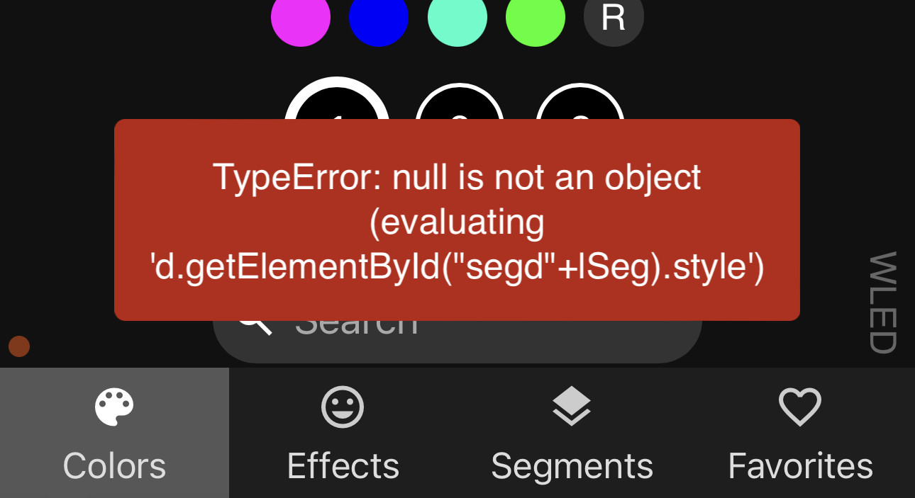 Habe nun ein wenig mit dem WLED Controller rumgespielt und einmal eine Uhr gebaut mit einer 60min Anzeige am LED Streifen. Leider funktioniert es nicht immer, der Controller hängt sich zum Teil auf. Nach einen Neustart funktioniert es wieder habe aber auch schon folgende Meldung gesehen, was bedeutet dies?