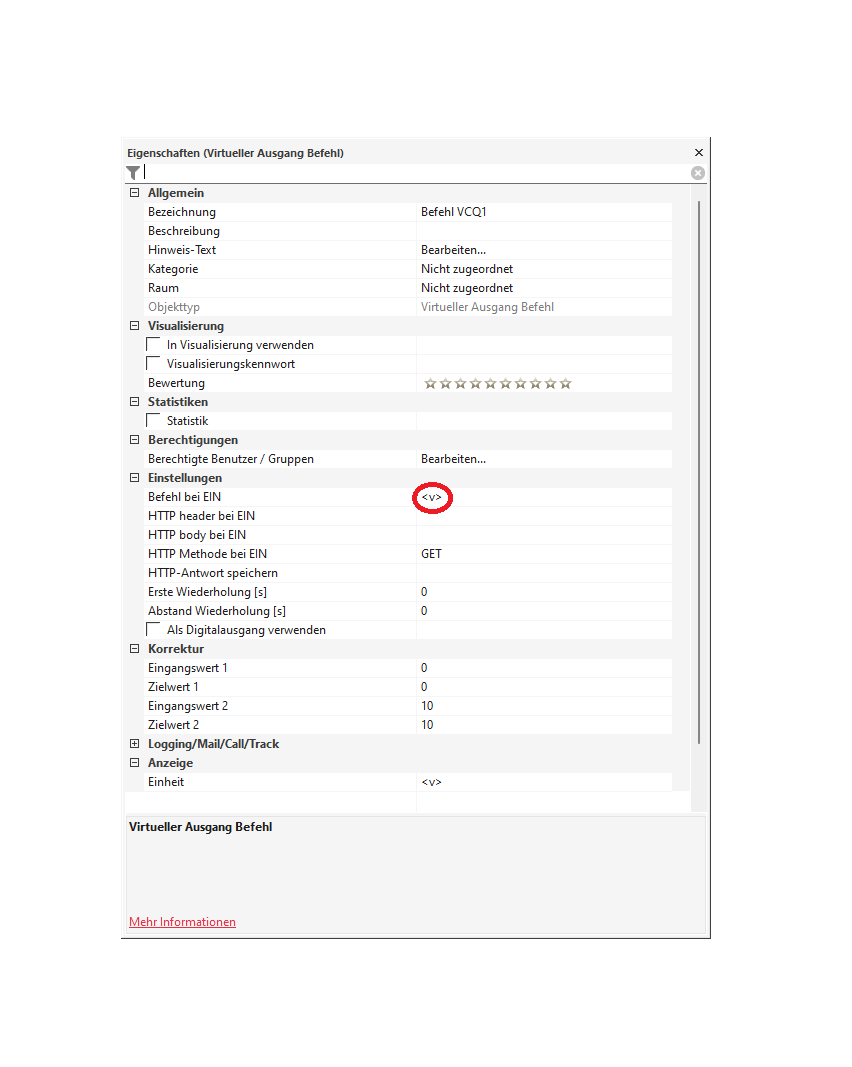 Ein Versuch klappt jedoch: Im Befehl VCQ1 des Virtuellen Ausgangs VC1 trage ich in den Einstellungen des Befehls im Feld "Befehl bei EIN" die gewünschten Parameter ein. z.B. A=80&FX55 Diese Parameter werden zum Stripe gesendet, dort tip top ausgeführt und um UDP Monitor angezeigt "Zeit 14:04:11.043; Adresse 192.168.1.nn; Gerät Ausgang VQ1; Port 21324; Textdaten A=80&FX=55".