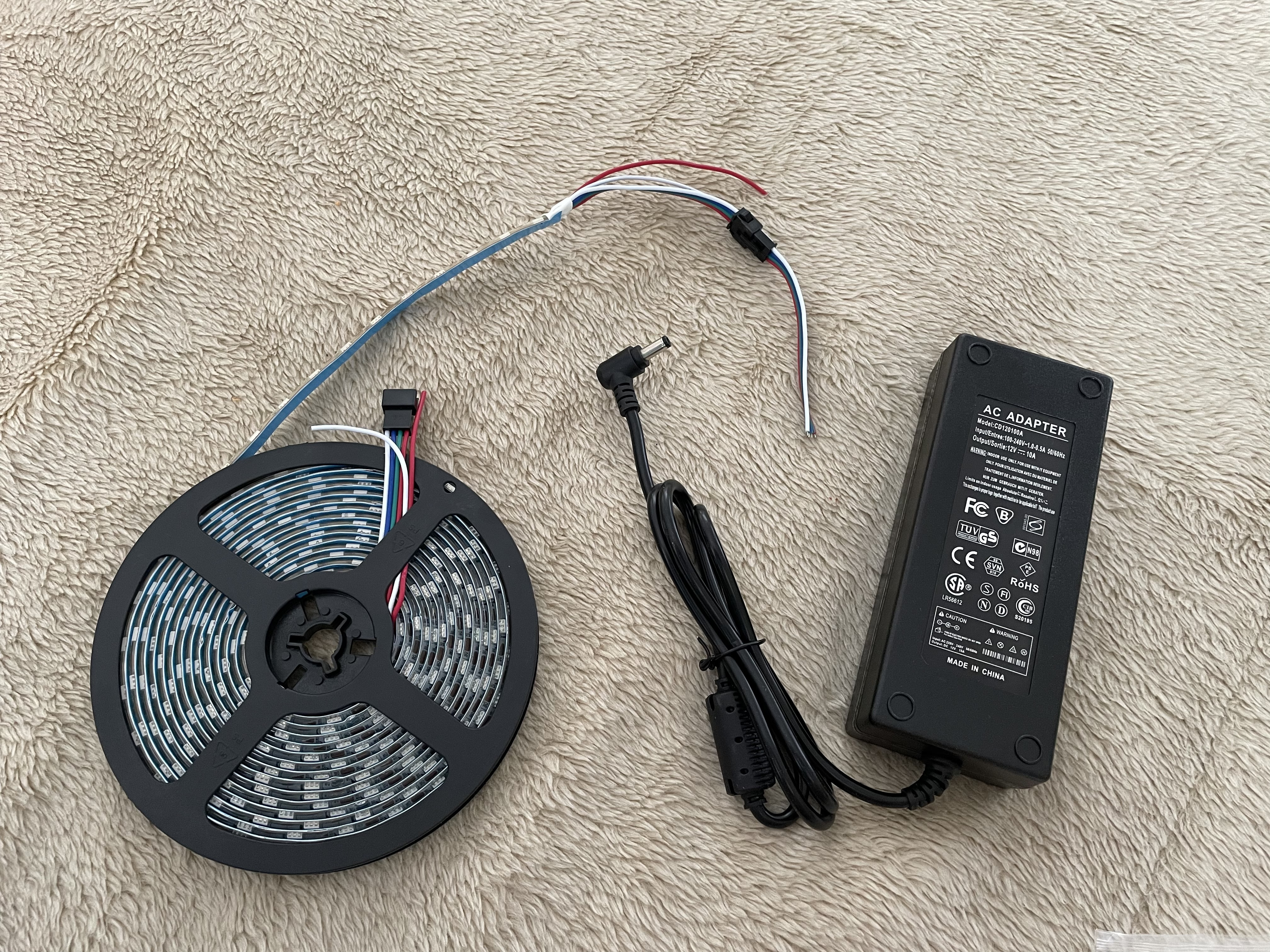 Zusätzlich sollte man eigentlich den von mir verwendeten 5m langem Stripe von beiden Seiten versorgen, das war mir aber schlicht zu aufwendig. Ich habe auch tatsächlich kein Problem damit, dass durch zu hohen Spannungsabfall die hinteren LEDs Farbfehler haben, das kann bei euch aber anders laufen