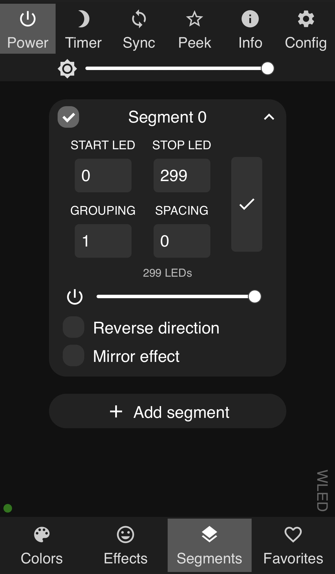 Frage an Manuel DaOptika und Alle die es wissen... muss man in den WLED Einstellungen in der WLED Software (IP des Stripes im Browser eingeben) beim Reiter "Segments" irgendetwas einstellen, oder lässt man es wie es vom System vorgegeben ist?