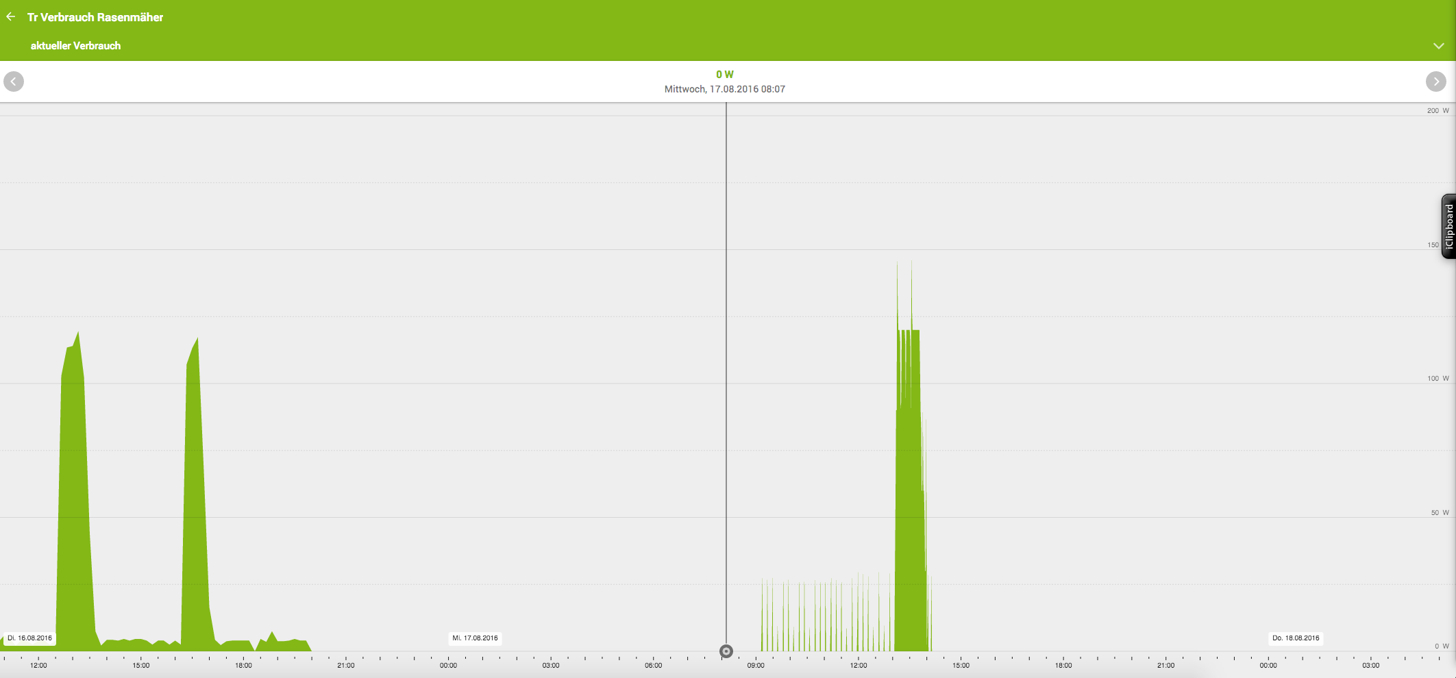 Grundlage ist der Eco Modus am Automower und daraus ergeben sich folgende Leistungen in meinem Fall an der benötigten Smart Socket Air
