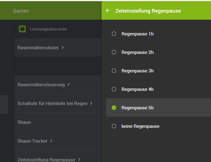 Mit der Wetterstation kann man eine 5h Regenpause einlegen wenn man möchte in dem man einfach die Ladestation ausschaltet und der Mäher dann stehen bleibt!