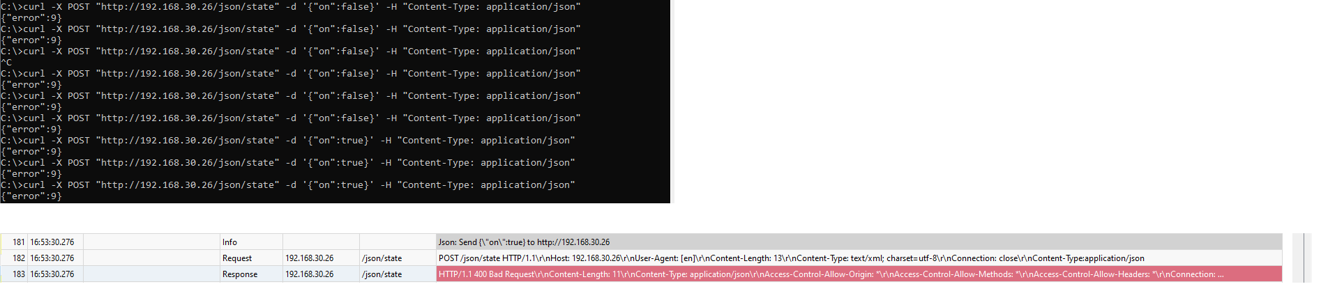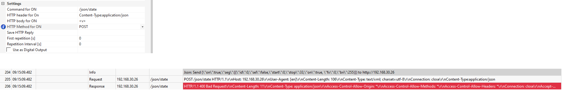 Befehl dann mit: Befehl bei ein: /json/state; HTTP-header bei ein: Content-Type:application/json; http-Body bei ein: <<wie folgt>>; http Methode bei ein: POST;