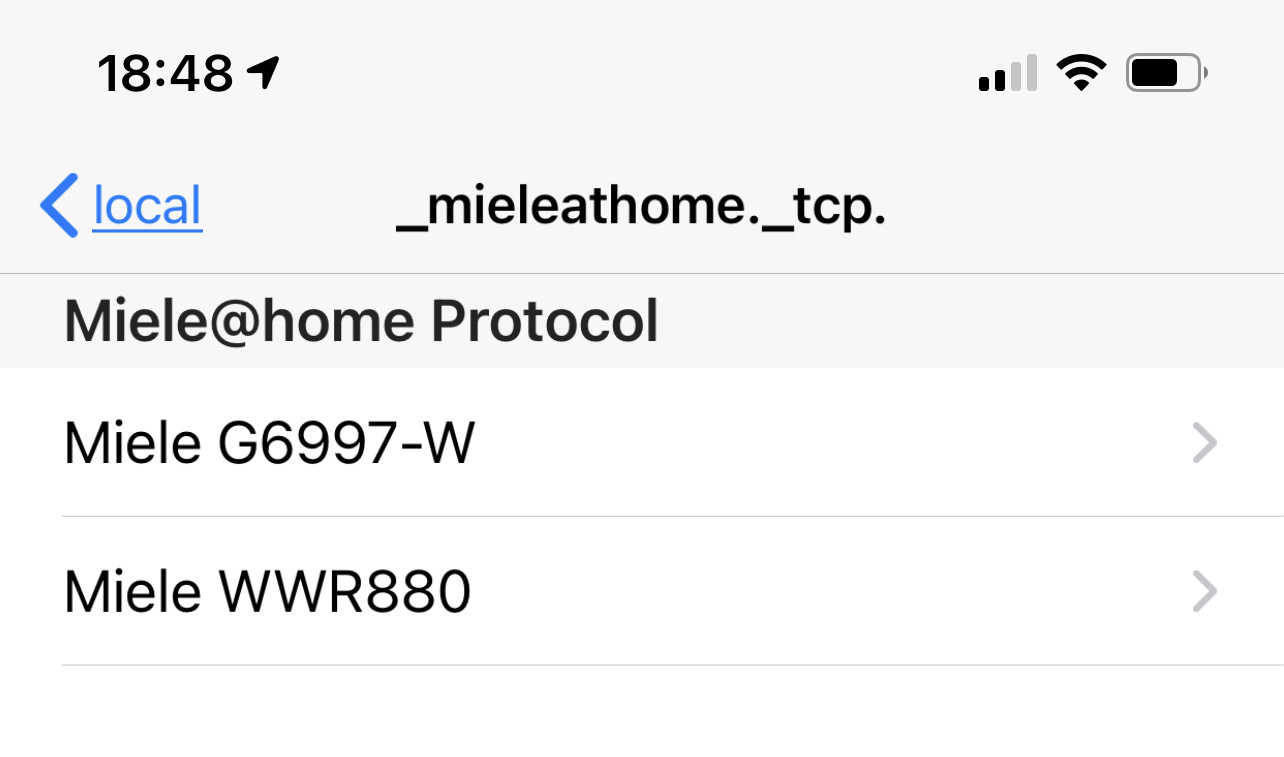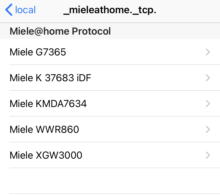 Falls das nicht klappt, empfiehlt es sich, im Netzwerk mal Devices zu suchen. Unter iOS gibt es das kostenlose Tool "Discovery". Wenn du das startest, solltest du die eingeschalteten Mielegeräte sehen:
