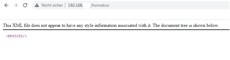 Und der Homebus Endpoint reagiert zwar aber meldet keine erkannten Geräte: