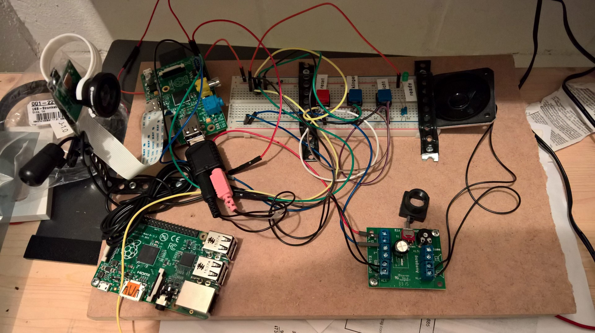 *Es gibt etliche Möglichkeiten und meine Konfiguration soll nur ein Beispiel sein. Ich würde heute eine andere Soundkarte nehmen und mir eine RaspiCam kaufen, bei der direkt eine Linse verbaut ist.