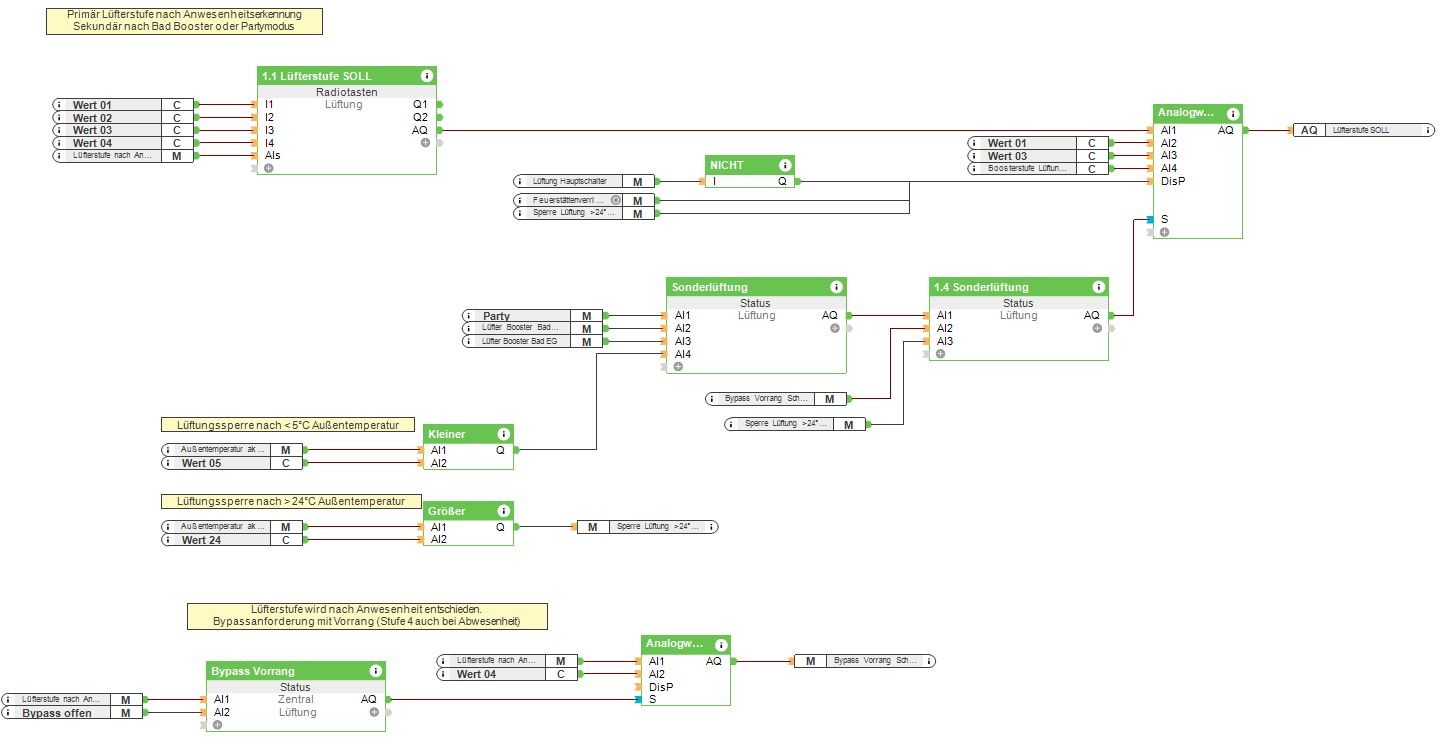 Dieser schaltet für die eingestellte Zeit in den Modus "Bedarfslüftung" mit Stufe 3 (Wobei ich gerne 4 hätte) und danach über Loxone in den definierten Betriebsmodus "Wochenprogramm"