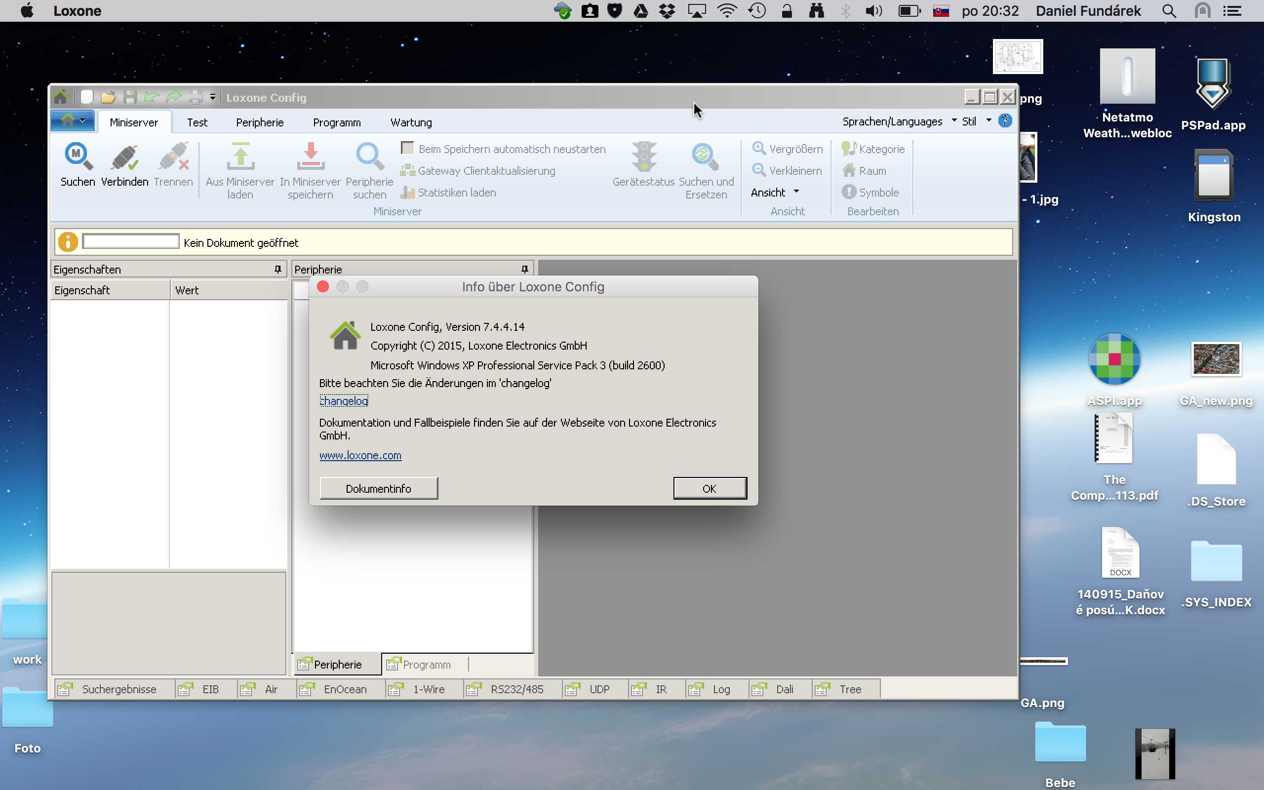 Statt Parallels habe VirtualBox, fuer diverse Linux und Windows-Emulationen. Ich hatte ein 'Loxoneeigenes'-Windows auch erst so geloest, das hat aber den Nachteil, dass ich dann immer mit meinem MBP arbeiten muss. Das ist aber meist bei mir im Buero. Wenn ich aber Abends auf dem Sofa sitze, liegt meist das kleine MBP (13&quot auf dem Couchtisch. Das nehme ich oft zum surfen, oder, wenn ich kurz eine Idee habe, zum Programmieren der Config. Da muesste ich dann auch eine eigene Windowsversion in VBox 'oder was auch immer' pflegen. Ist also etwas nervig und aufwaendig. Deswegen habe ich mir mal bei Amazon so einen miniPC (war als Angebot drin) fuer ca. 70 Euro geholt. Der liegt mit im Serverschrank und hat quasi eine Permanentverbindung zum Miniserver. Und auf den miniPC kann ich mich von ueberall per RDP aufschalten und nahezu ohne Einschraenkungen jederzeit arbeiten. Funktioniert wirklich ganz hervorragend.