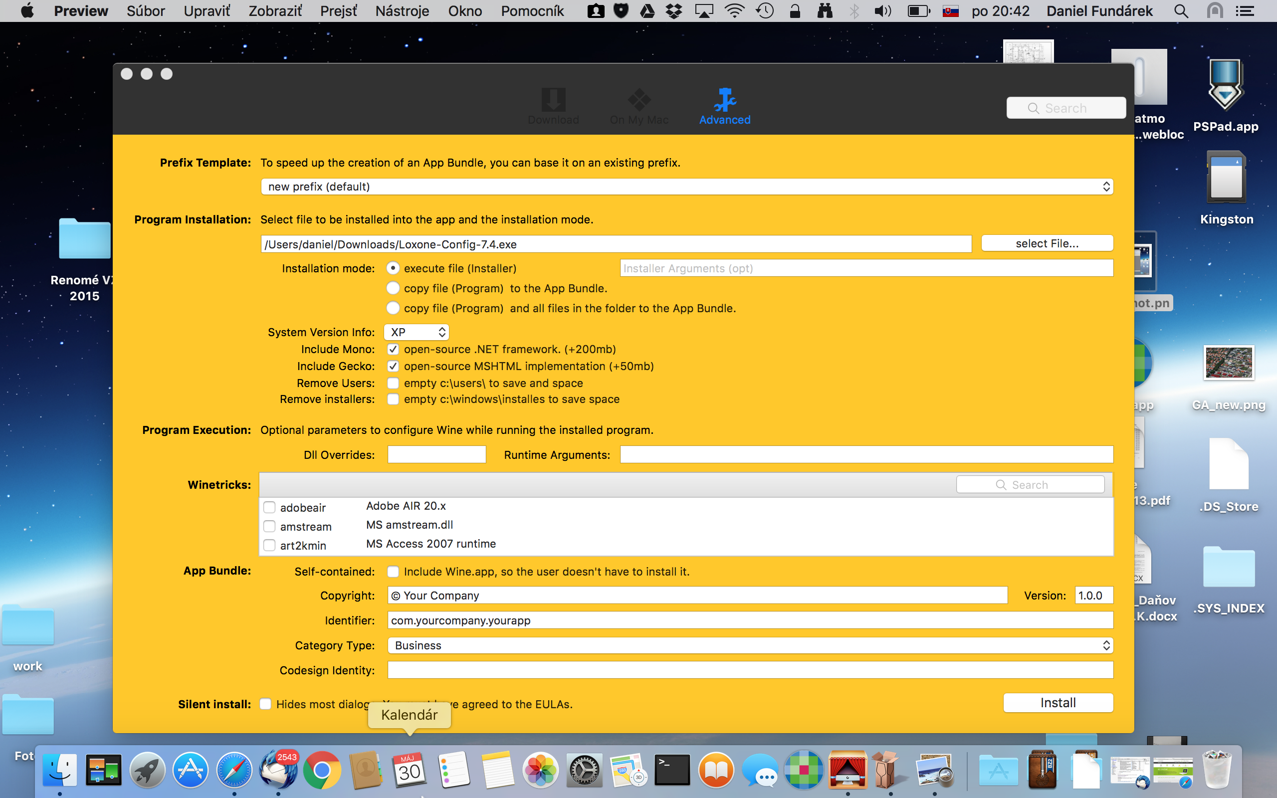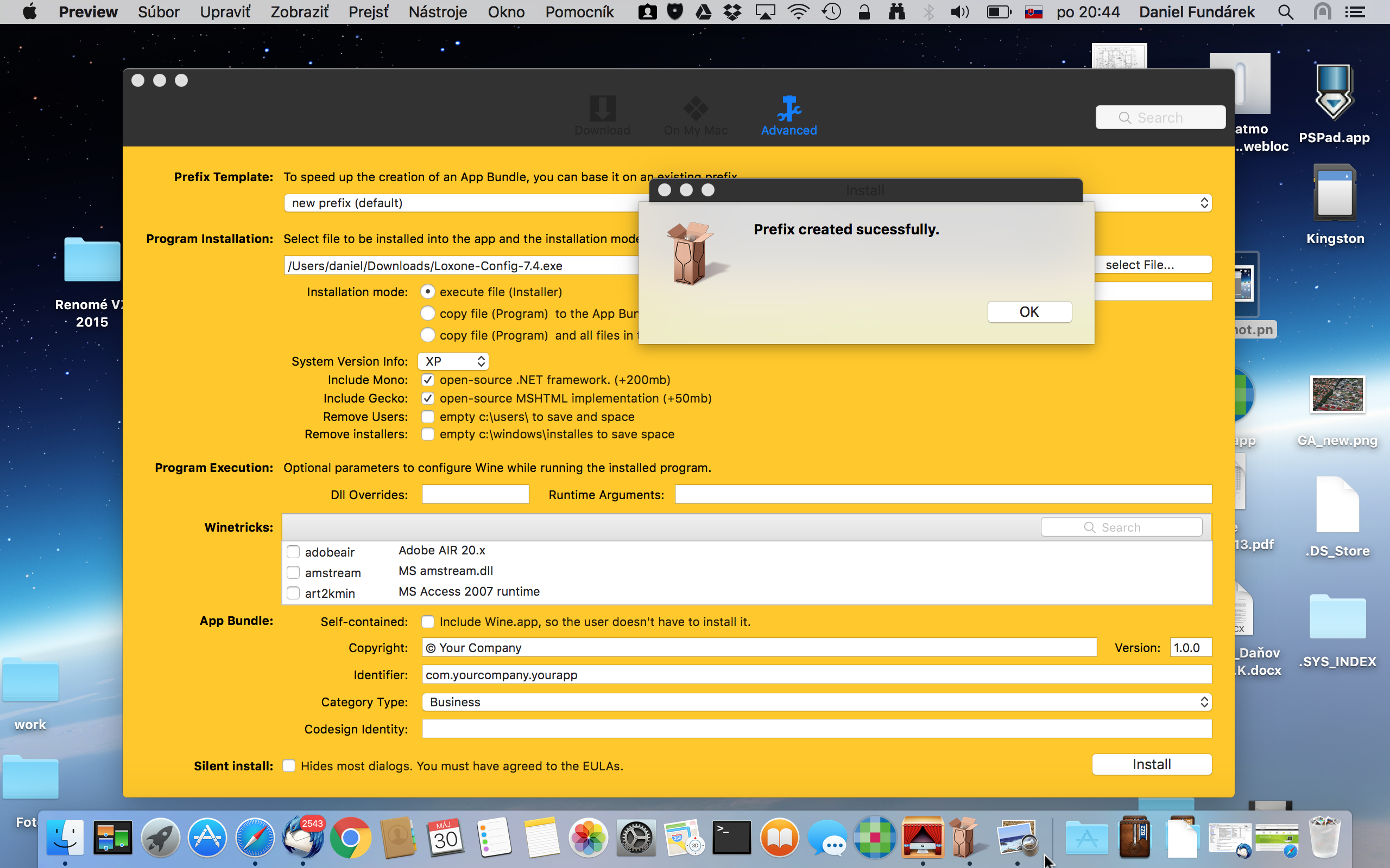 Mac OS X El Capitan, WineBottler 1.83 (http://winebottler.kronenberg.org), Loxconfig 7.4.4.14 alles einwandfrei und frei.