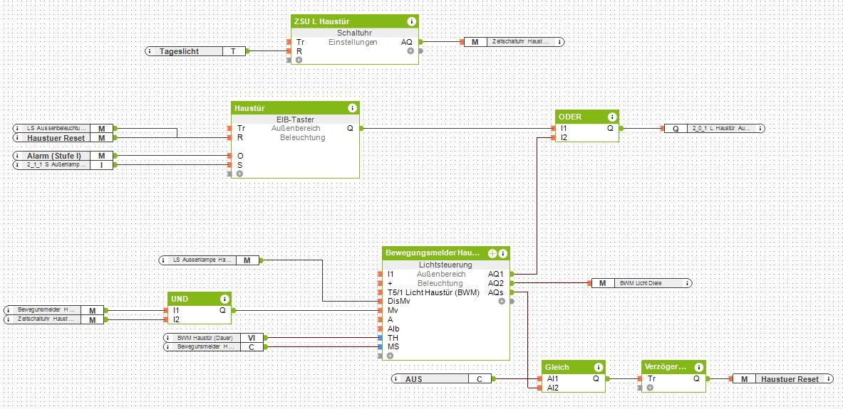 ich möchte folgendes realisieren - an meiner Haustür ist eine Lampe, diese soll sich unter folgenden Umständen einschalten