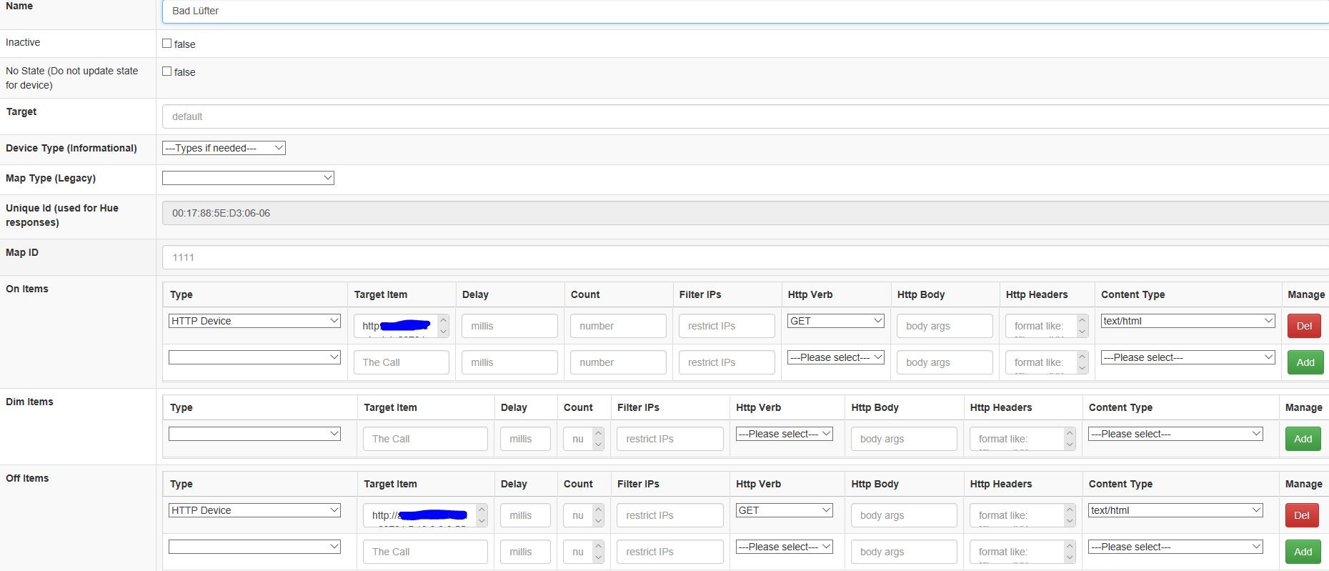 Die Ha Bridge (Version 4.2.0 auf Port 8080) schaltet nicht wenn man auf Test ON oder Test OFF klickt.