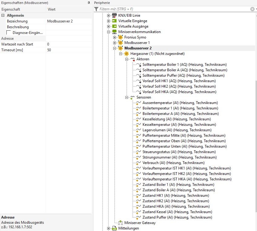 Wir haben einen Hargassner Pelletskessel, welcher lt. Hersteller und Loxone ohne Extension per Modbus eingebunden werden kann, was ich aber bisher noch nicht versucht habe, da ich diesbezüglich etwas unsicher bin.