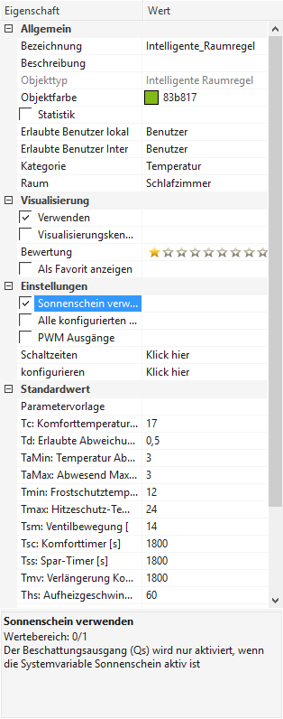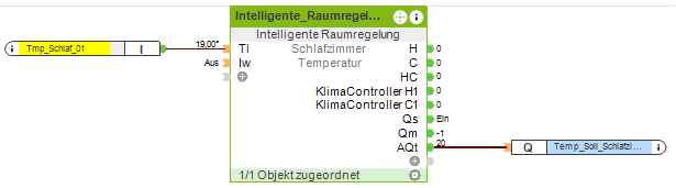 Ich übergebe dem IRR lediglich die aktuelle Temperatur über einen Sensor und definiere die Komforttemperatur auf z.B. 20°C