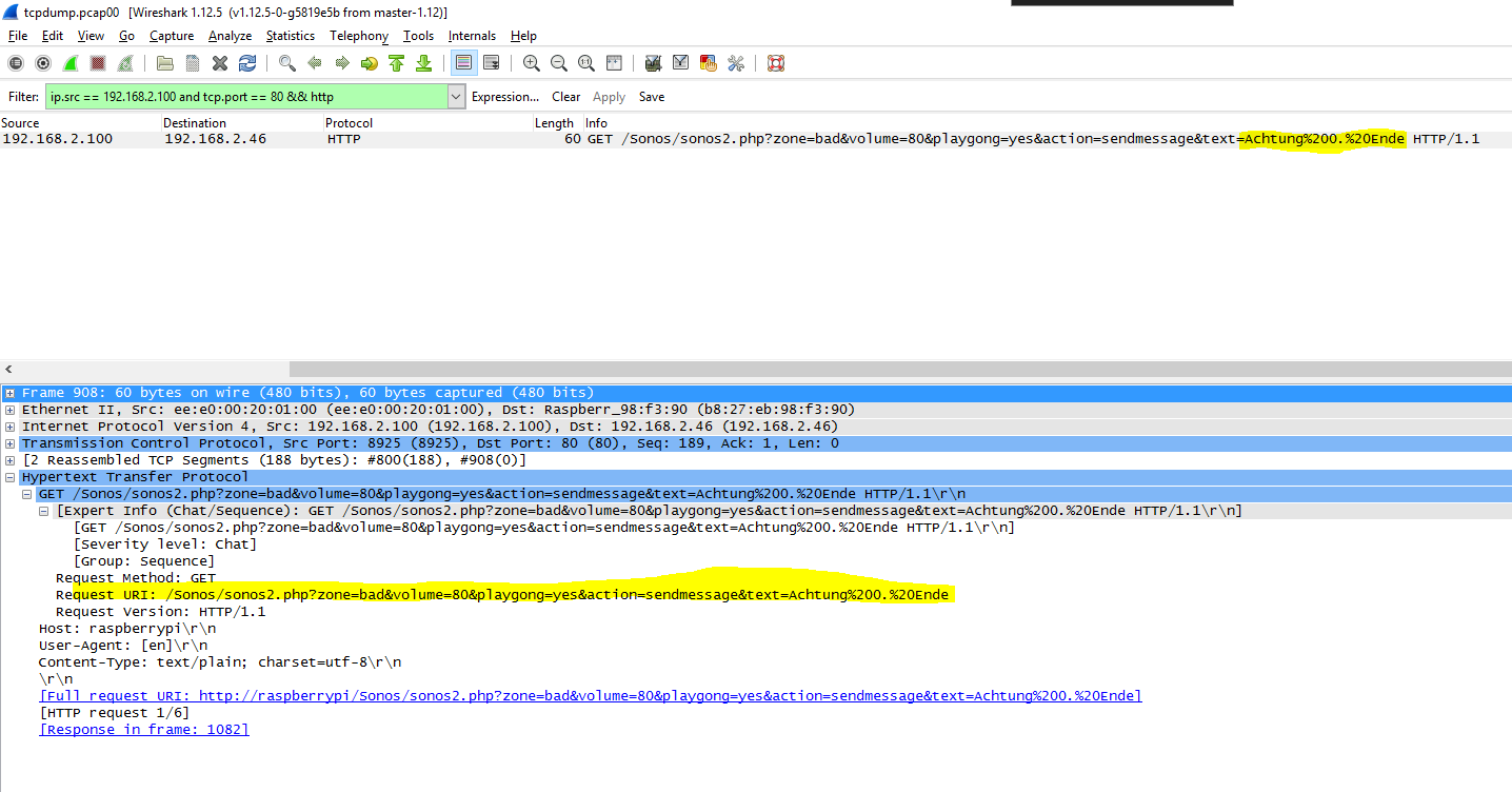Ich habe das mal mit tcpdump auf dem RasPi getraced und in mir in WireShark angeschaut. Dort sieht man ganz deutlich nur Leerzeichen an der Stelle wor normalerweise der Text aus dem Statusbaustein stehen sollte.