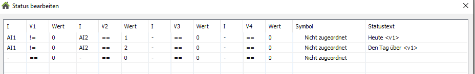 Also am einfachsten mal zwei Texte in den Statusbaustein schreiben und mit einen Schalter am Eingang dafür sorgen, dass Text 1 bei Schalter ein und Text 2 bei Schalter aus gesendet wird.