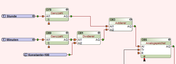 Allerdings erscheint es mir recht umständlich, hierzu erst 6-7 Bausteine nur für die Berechnung der Uhrzeit miteinander verschalten zu müssen.