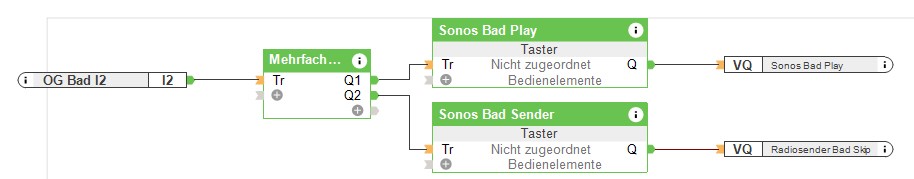 Hab die Funktion versucht mit dem Baustein "Mehrfachklick" zu realisieren. Dabei kommt es mir vor, als ob die Signale mehrfach über den digitalen Ausgang gesendet werden. Parameter für den Mehrfachklick sind Standard: M:0,35 und T:0,1. Ist der Mehrfachklick eigentlich der richtige Baustein oder geht das eleganter? Hatte auch überlegt Vol +/- mit Langzeitklick zu realisieren aber vielleicht geht das auch elganter?