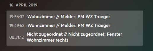 Erster, der Reed Kontakt eines Fensters heute morgen, dann ein zweiter Alarm abends... danach kurz darauf wieder und der gleiche Melder und zwar ein PM im gleichen Raum.