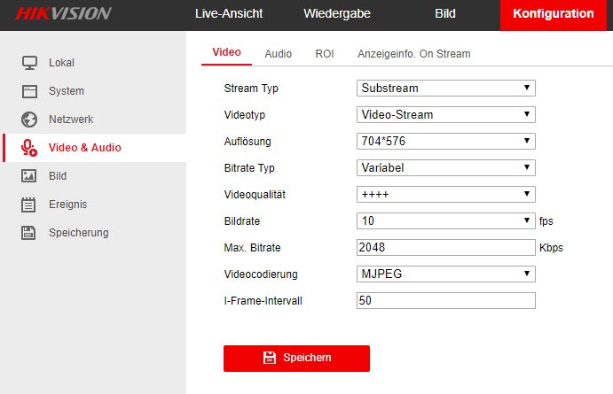 Ich habe im Hikvision Portal auf "Substream" gestellt.