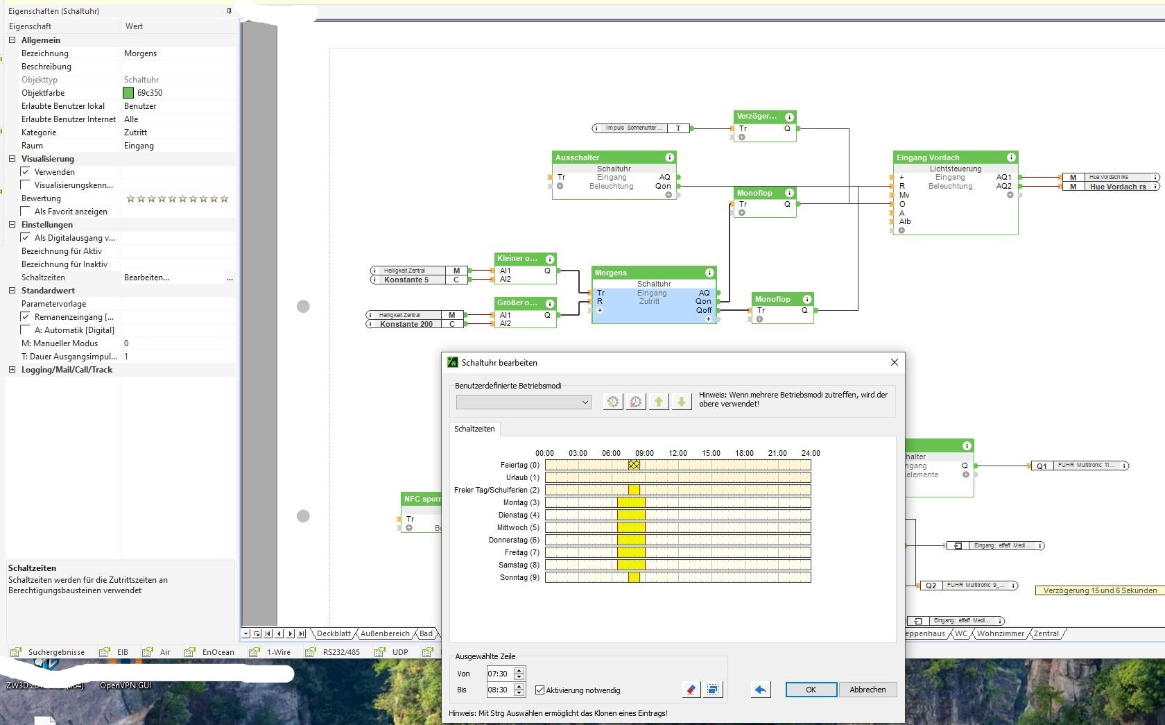 ich möchte meine Eingangsbeleuchtung morgens in einem bestimmten Zeitraum in Zusammenspiel mit der Helligkeit ein- und ausschalten.