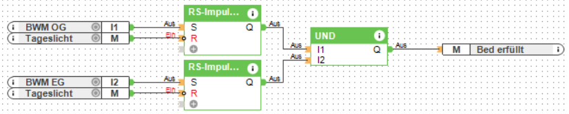 Du legst die beiden BWM jeweils auf ein Flipflop (S), um die Aktivierung zu speichern.