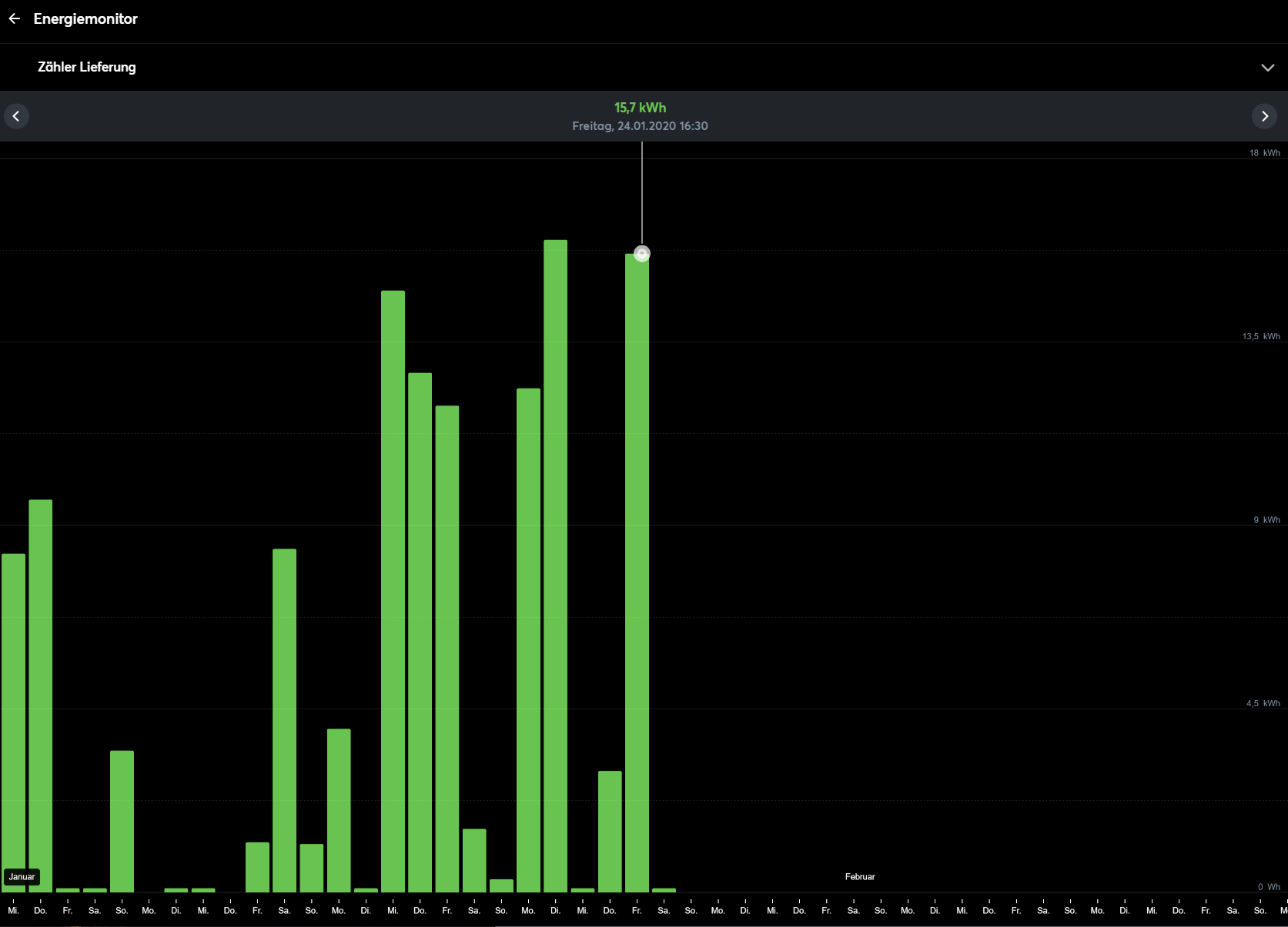 25,6kwh-15,7kwh= 9,9kwh zum Verbrauch Rechnen + 6,5kwh= 16,4 Verbrauch und nicht wie in der App 30,3kwh