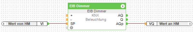 du kannst den Dimmer auch auf ein Lichtsteuerungsbaustein legen, (macht mehr Sinn für Szenen) du musst nur zwischen dem Ausgang (Dimmer 0-100%) und dem HM Befehl eine Formel legen ( I1 / 100 )