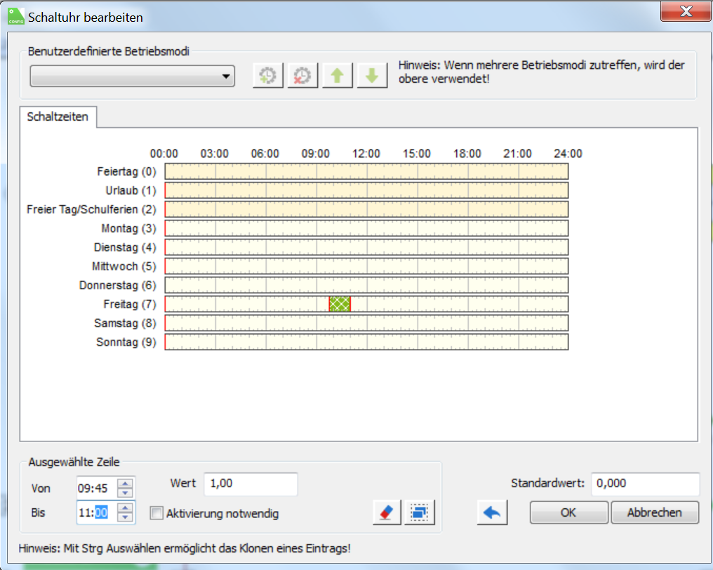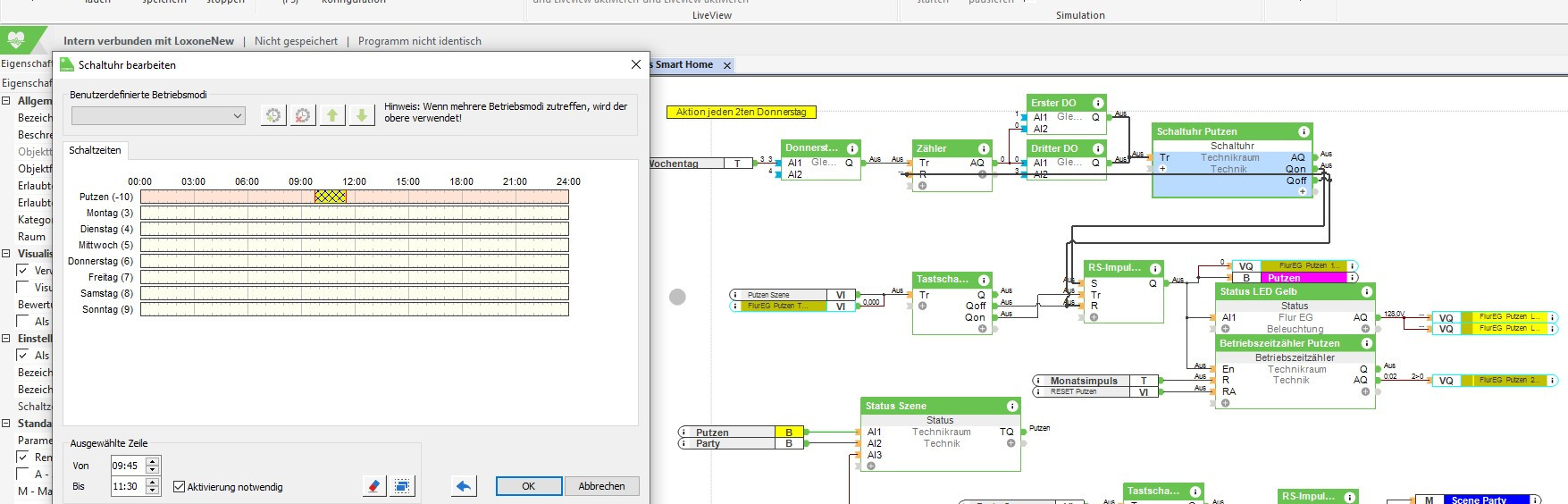 Die andere Geschichte, "Betriebszeit mit zugeordneten Betriebsmodi" ist wegen der Schaltuhr-Einbindung meiner Meinung nach nicht möglich!