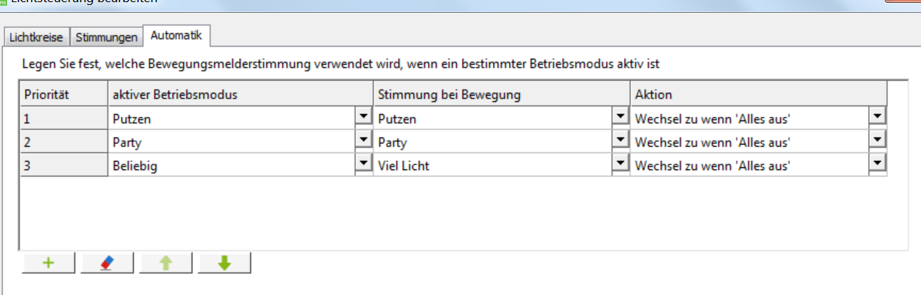 Im Licht-Baustein in dem Automatik-Reiter wird nur ein Betriebsmodus eingetragen wenn dieser auch automatisiert werden soll.