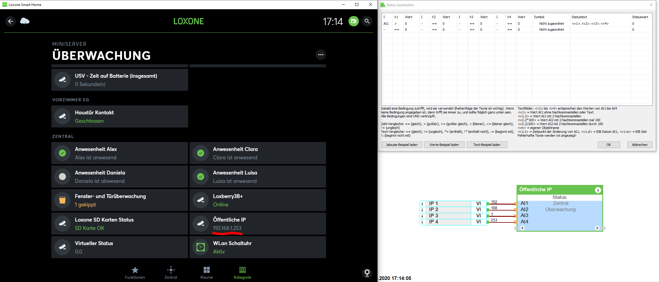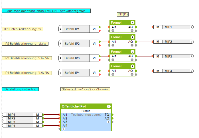 Bei den verwendeten Befehlserkennungen wird bei den ersten 3 IP-Blöcken jeweils der Folgeblock als Nachkommastellen mitgenommen, die ich dann mit Hilfe des Formelbausteins abgeschnitten habe. An TQ des Statusbausteins liegt dann die IP.