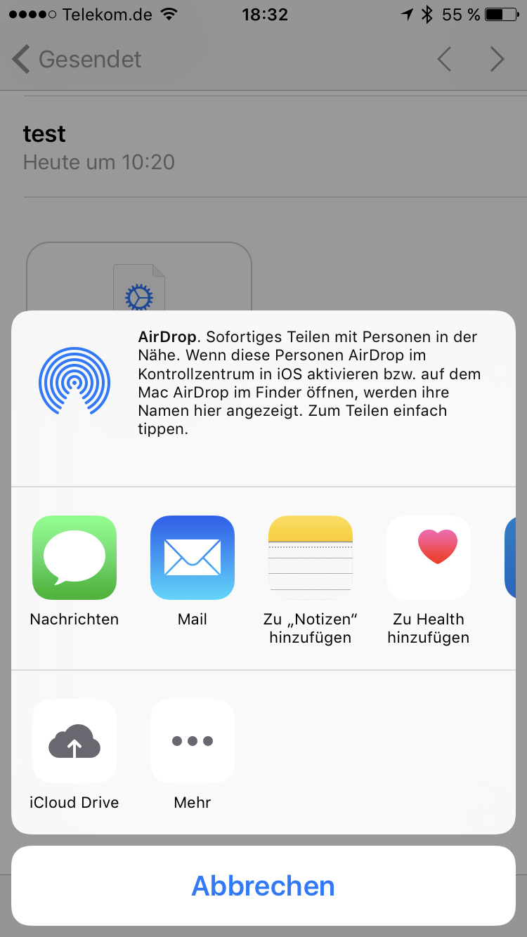 Ich schick sie mir per Mail in die Standard Mail App und dann kommt das hier