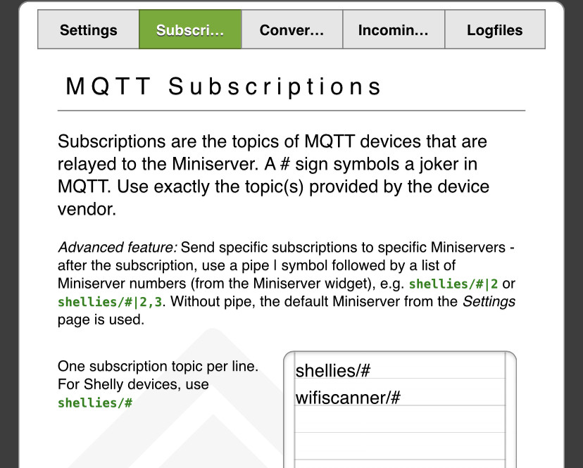 Das ist schon mal nicht gut, aber zu der Konfiguration in Loxone brauchen wir noch gar nicht zu gehen wenn bei den Subscriptions nichts ankommt...