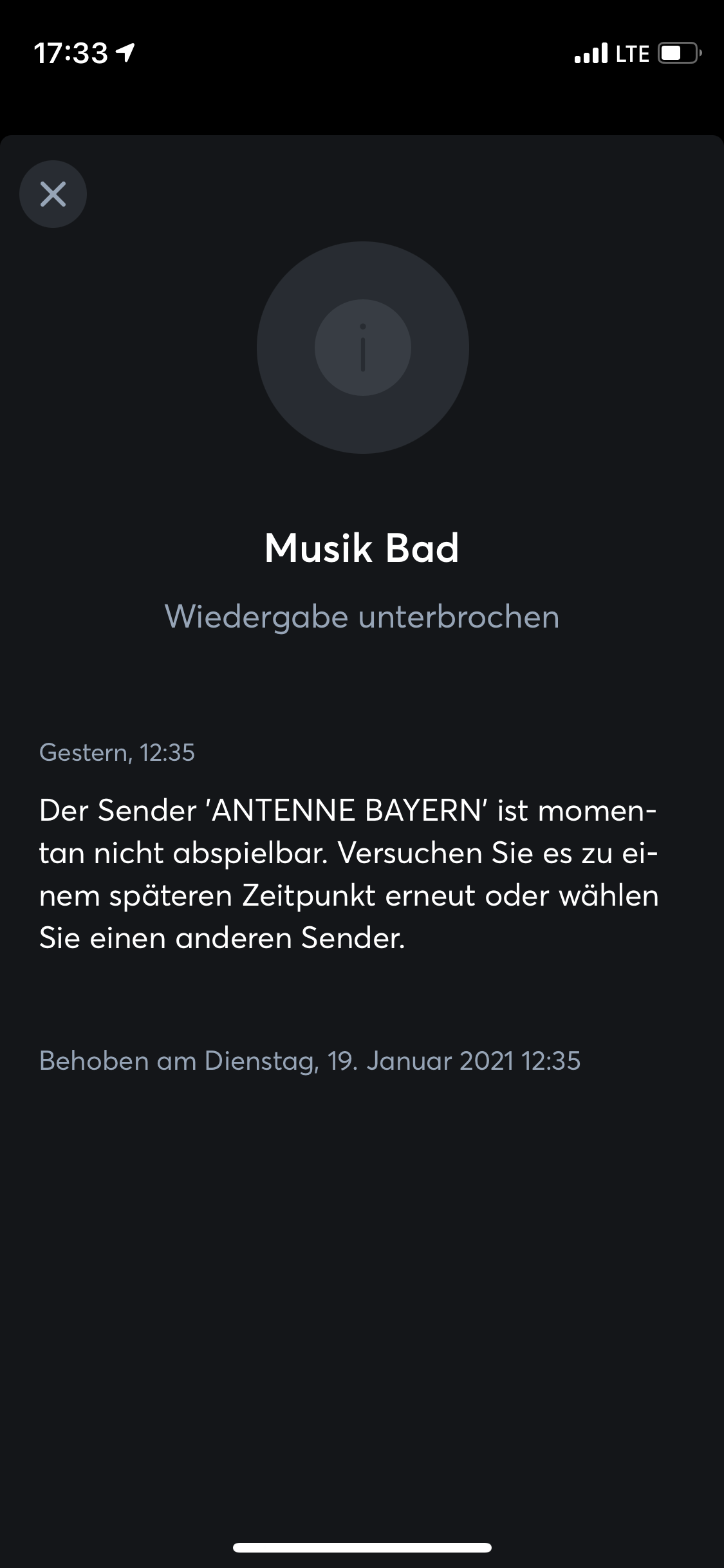 Uns ist aufgefallen das es sehr häufig bei dem Sender „ANTENNE BAYERN“ vorkommt. Ich hatte 4 Jahre den Musikserver im Einsatz da hatte ich diese Abbrüche nie, daher kann es ja eigentlich nicht am Sender selbst liegen.?