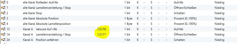 Dann müsste ich mich bei allen Adresse vertippt haben ... denn der Impuls betrifft alle Jalousien (die alle eine andere GA besitzen ...)