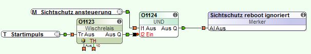 z.B. nach einem reboot läuft das programm schon, die 1wire-Fensterkontakte werden erst eingelesen. Zu dem Zeitpunkt sind ganz kurz alle fenster offen. Bei zwei Balkontüren heisst offene Tür = Sicherheitsabschaltung. Damit mich der miniserver nicht auf den Balkon aussperrt. D.h. reboot bei raffstore unten = raffstore fahren rauf.