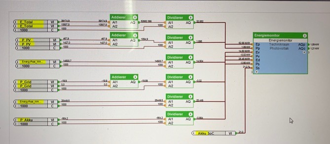 Ich vermute folgendes: Es gibt in deiner Programmierung aktuelle Werte (P_Grid, P_Akku, etc) und summierte Werte (E_Total, EnergyReal*). Die gehen alle auf den gleichen Energiemonitorbaustein. Er nimmt dann an, dass alle Werte aktuelle Werte sind. Aus deinen Werte wie EnergyReal berechnet er dann die Ertragswerte.
